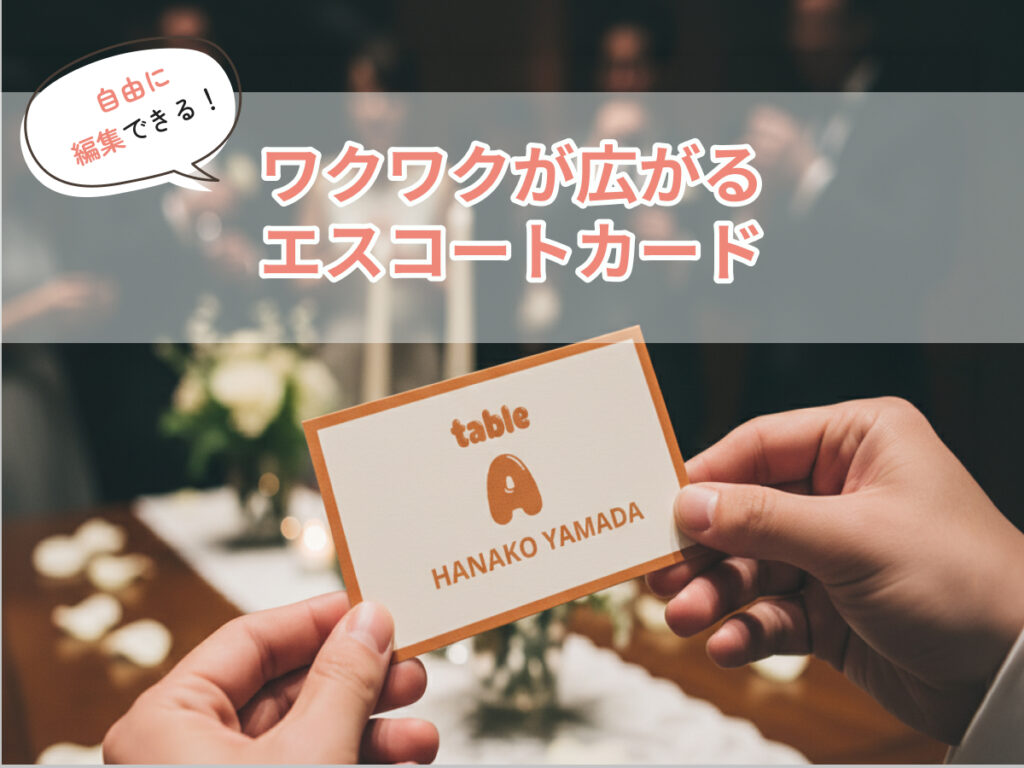 エスコートカードとは、ゲストの名前とテーブル番号が書かれたカードのこと。受付やウェルカムスペースに設置しておき、ゲストが自分のカードを確認して席を探す仕組みです。